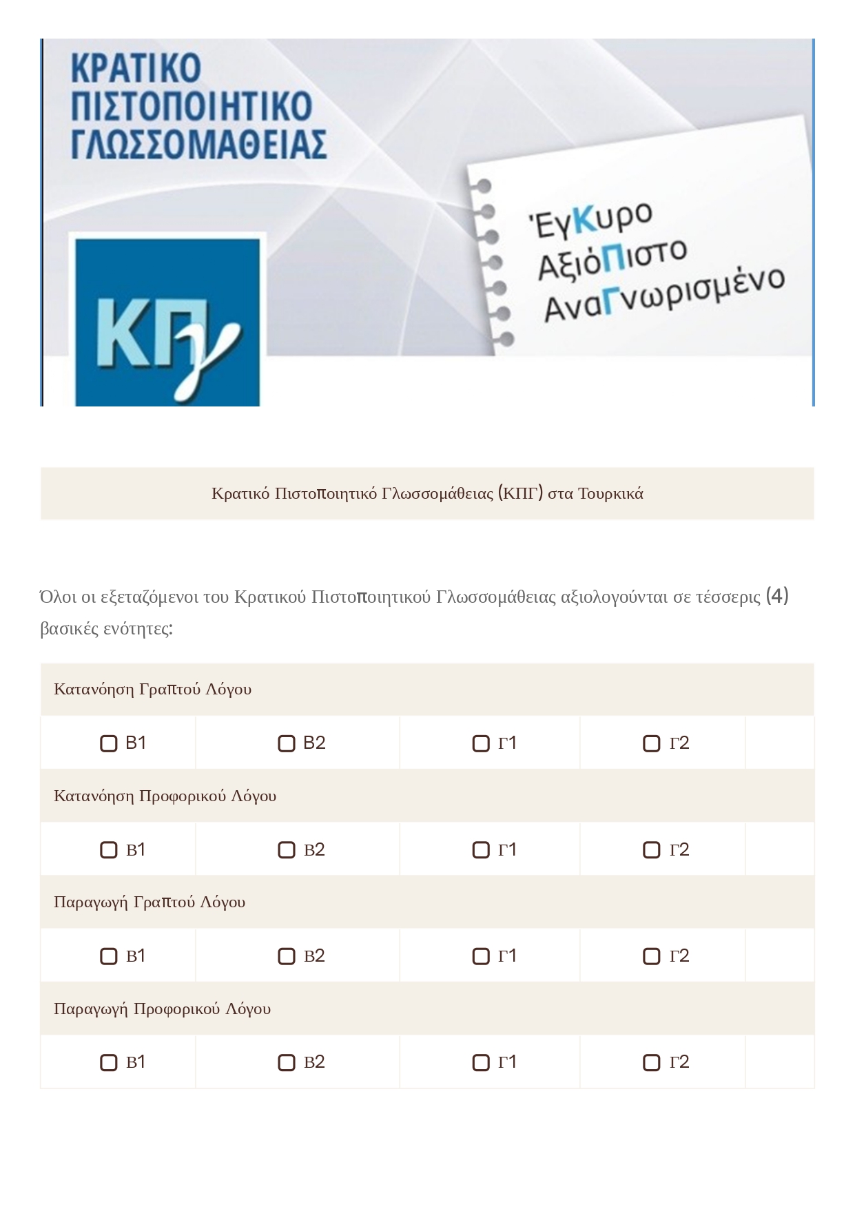 Κρατικό Πιστοποιητικό Γλωσσομάθειας (ΚΠΓ) στα Τουρκικά